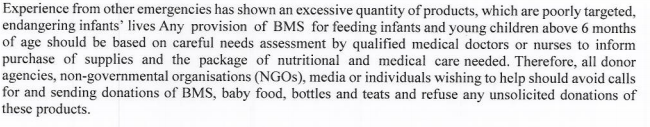 @JasKaurShergill the Nutrition Cluster says orgs should avoid calls for & sending donations of formulapic.twitter.com/iylDs7ERbA