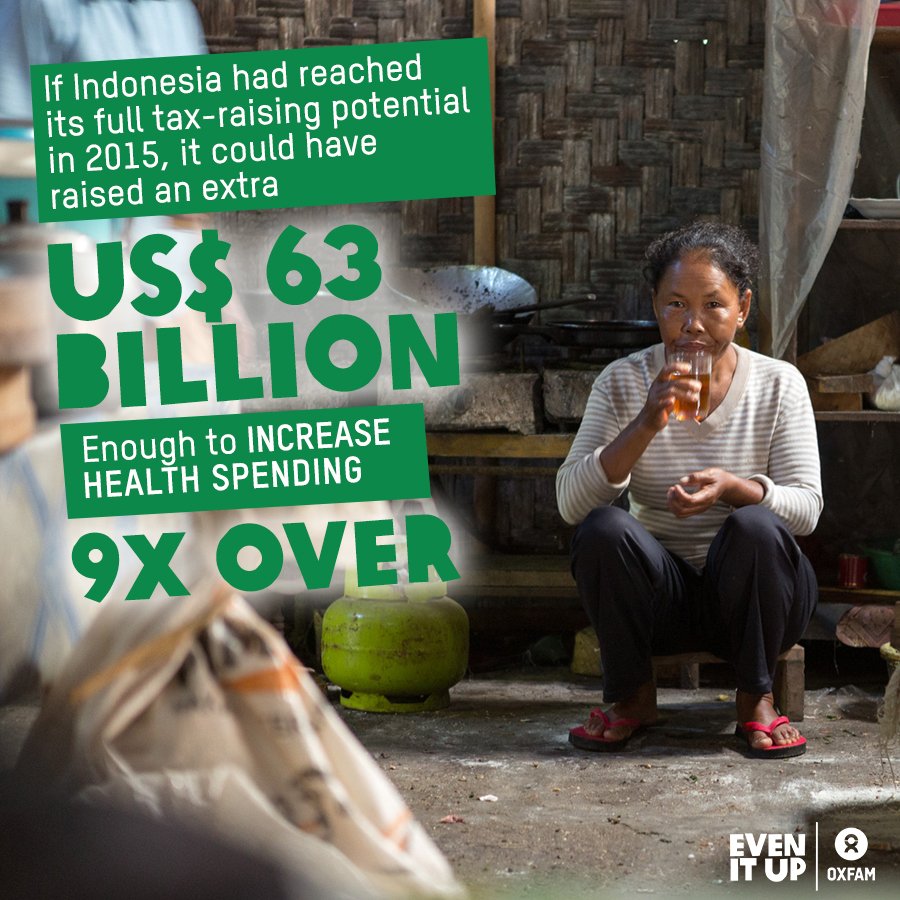If Indonesia reached its full tax-raising potential, could increase health spending 9x over! #EvenItUp #TaxJustice http://oxf.am/ZbM5 pic.twitter.com/jaVxwFHmiM