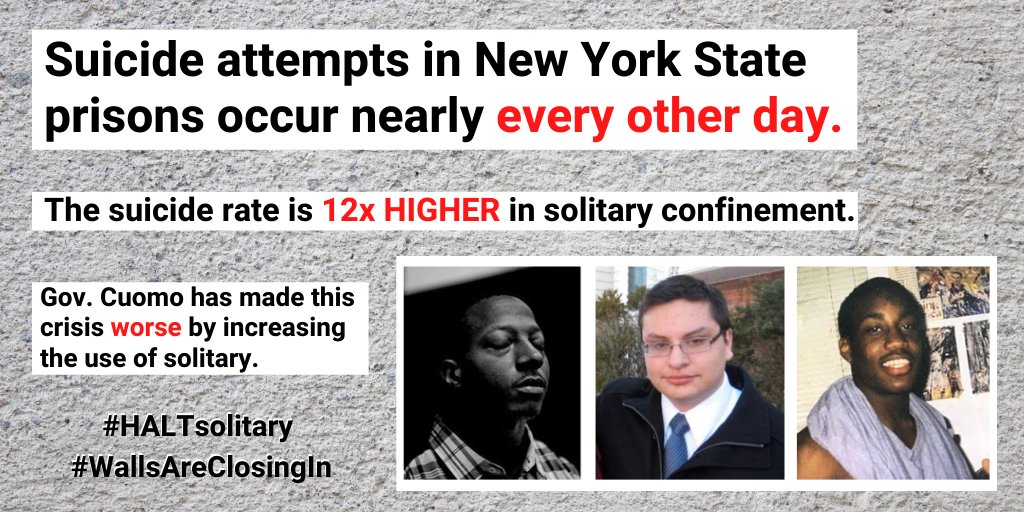 As New Yorkers sheltering in place get just a glimpse of the pain of isolation, a devastating new report by @NYCAIC exposes the crisis of suicide & self-harm in solitary confinement in NY prisons. http://nycaic.org/wp-content/uploads/2020/05/The-Walls-Are-Closing-In-On-Me_For-Distribution.pdf … #HALTsolitary #WallsAreClosingInpic.twitter.com/CpQMolGjma