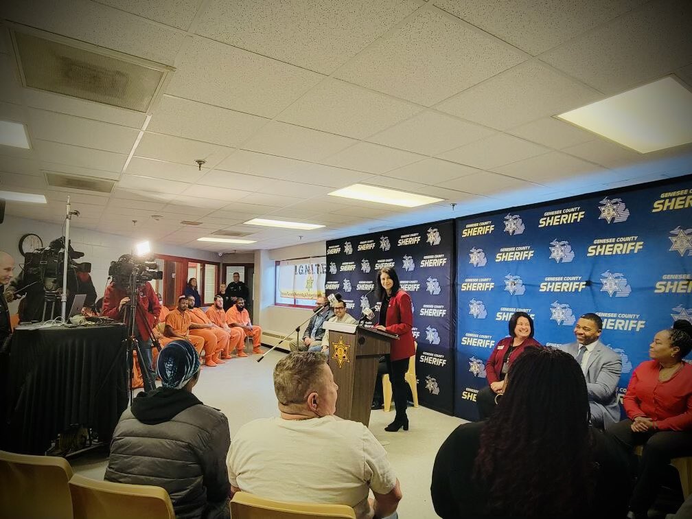 @MIAttyGen@dananessel addressed graduates of the I.G.N.I.T.E program this morning with their friends and family members present. Shout out to Genesee County Sheriff Swanson (@CountyGenesee) for his groundbreaking work.pic.twitter.com/GJJgRUJRMk