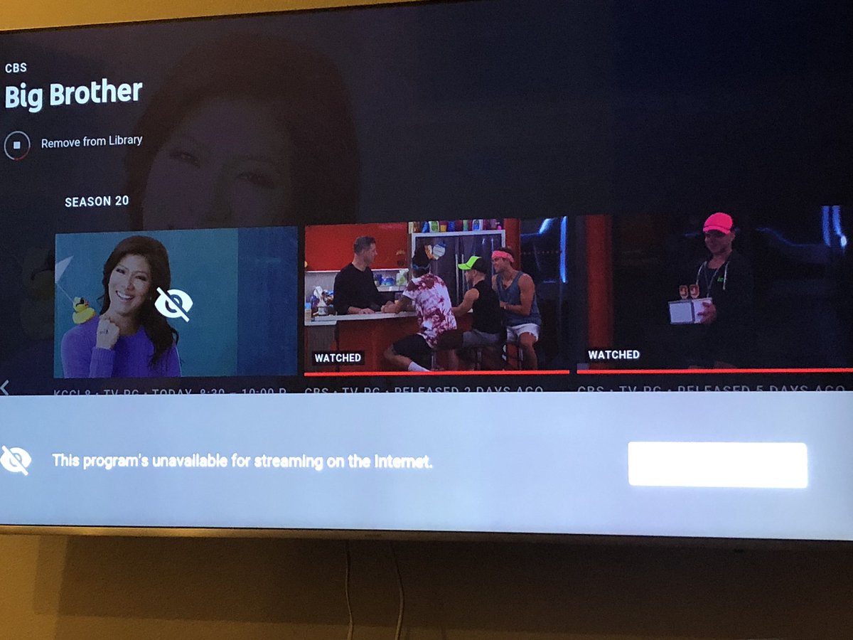 Well I’ve watched cbs and never had this problem for past 5 months. Makes no sense
