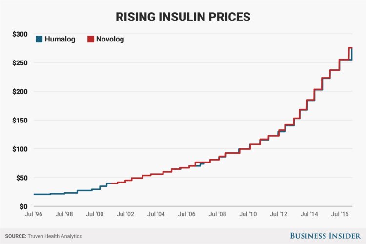 My insulin (Humalog) is priced at $1,100 a month, or $12,200 per year. And the price increases at PhRMA’s whim by up to 20% at a time. In 1996 when I was diagnosed with Type 1 diabetes, the exact same insulin and amount was priced at $900 a year. I die without it. https://twitter.com/AbdulElSayed/status/1160983035145121792 …pic.twitter.com/NHJCHyxLXv