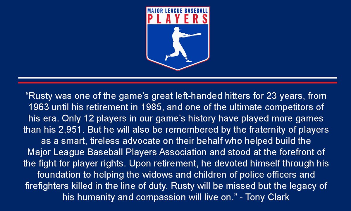 Statement of MLBPA Executive Director Tony Clark regarding the passing of Rusty Staub...pic.twitter.com/E3OTY0drDF
