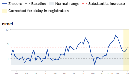 Wow, you are right, Israel left EuroMOMO. Mortality org has all-cause death to week 8, 2021. Age-adjusted Israeli excess death is 1,226 for 2020 & another 731 for 8 weeks in 2021 (2021 is 4X worse per week than 2020). Something is very odd. Could this be the reason they left? https://twitter.com/gzibordi/status/1377638595884896257 …pic.twitter.com/hsaCqggt61