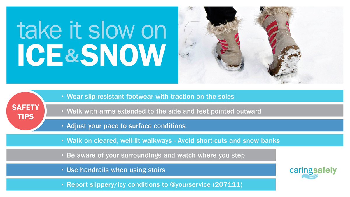 With winter comes slippery conditions! Take it slow on ice and snow with these safety tips. Find more outdoor winter tips