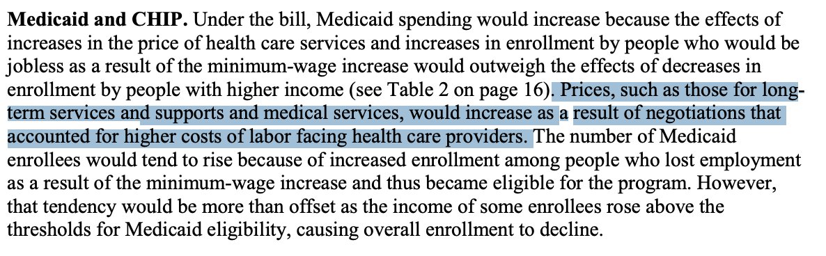 One big way CBO says a $15 minimum wage would increase gov't spending is through Medicaid. That's because home care workers make such awful pay, and the law would require giving so many of those workers raisespic.twitter.com/FpYtBQwPuE