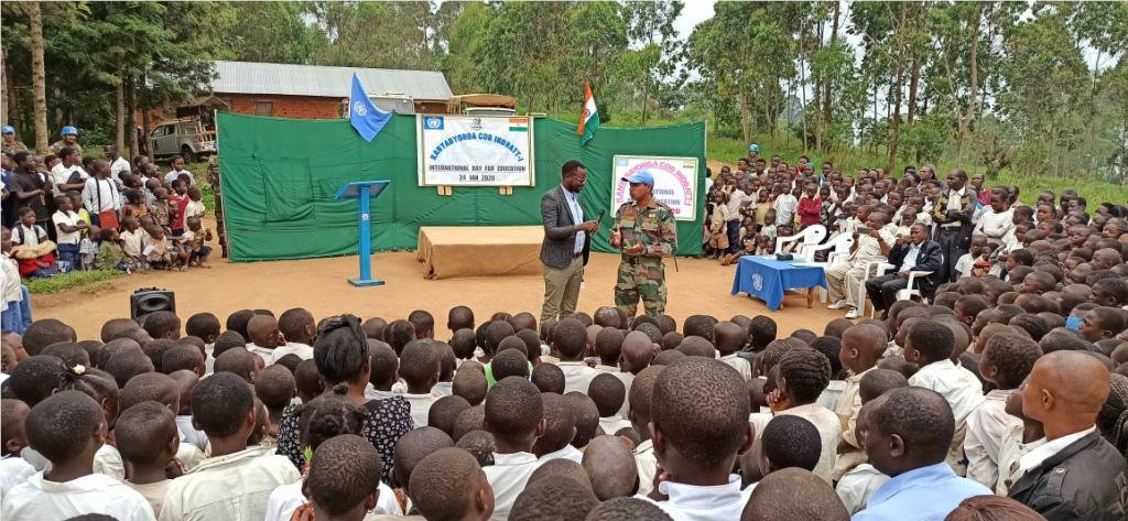 #RDC : Les Casques bleus indiens#India de la#MONUSCO ont organisé à Kanyabayonga, divers cours et conférences de motivation à l’intention des écoliers, dans le cadre de la commémoration de la «Journée internationale de l’Education ».#Serving4Peace.#A4Ppic.twitter.com/yuwlNCnODe