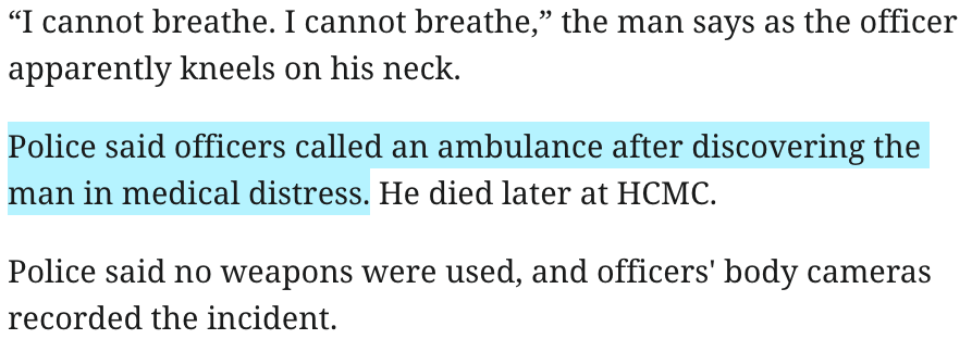 This line is disingenuous. Exactly how did they "discover" he was in medical distress? I get that, as a news organization, you try to report facts dispassionately, but wouldn't, "Officers called an ambulance when the man displayed signs of medical distress" be better?pic.twitter.com/59lwvOZGOk