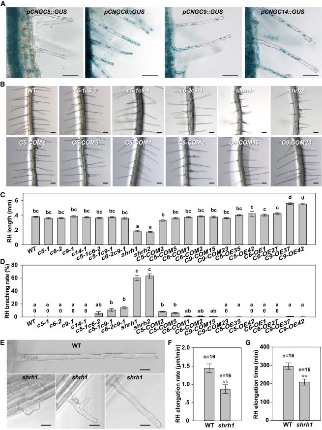 Three CNGC Family Members, CNGC5, CNGC6, and CNGC9, Are Required for Constitutive Growth of Arabidopsis Root Hairs as Ca2+-Permeable Channels