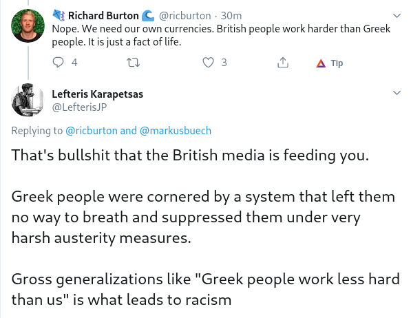 Few things trigger me as much as the racist bullshit spewed by populists in various parts of Europe about the "hardworkingness" of their own people. It's always them versus us. Our hard working people. Their lazy bums. The lazy Greeks, the lazy Italians, the lazy Mexicans. https://twitter.com/LefterisJP/status/1223346210179817475 …pic.twitter.com/SYrI7qatfo
