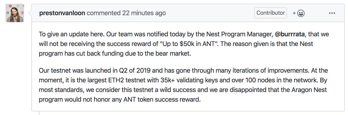 PS. IDGAF about a grant program not living up to promises. Its fine. What I care about is giving such unprofessional reasons that might hurt the morale of some amazing people. If this was Golem speaking instead of Aragon, I’d probably be saying the same.