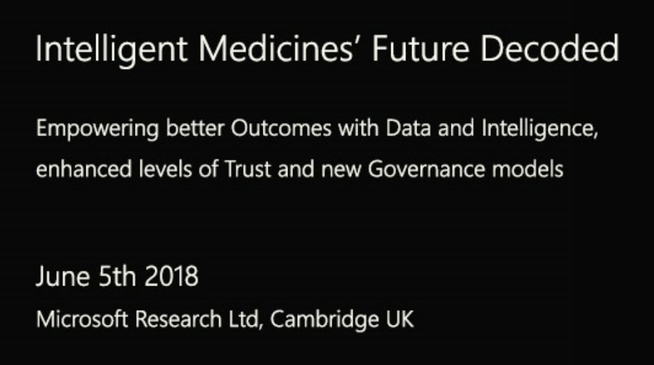 #Medicines’ Future Decoded event, with guest speakers from@Novartis@PAREXEL@DNAnexus@VivliCenter Captario@EFPIA and@BCplatforms. Register here for the last few places http://msft.social/K2y8jh#AI#healthcarepic.twitter.com/bwUnuEFCyY