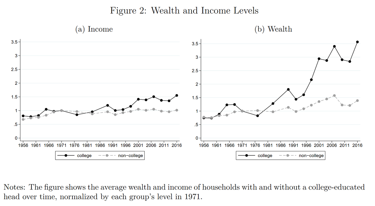 I am very excited our paper "The College Wealth Divide: Education and Inequality in America, 1956-2016" came out in the St Louis Review. We document a rising wealth divide much larger than income between college&non-college households. Summary: https://research.stlouisfed.org/publications/economic-synopses/2020/01/17/the-college-wealth-divide-continues-to-grow/ …
