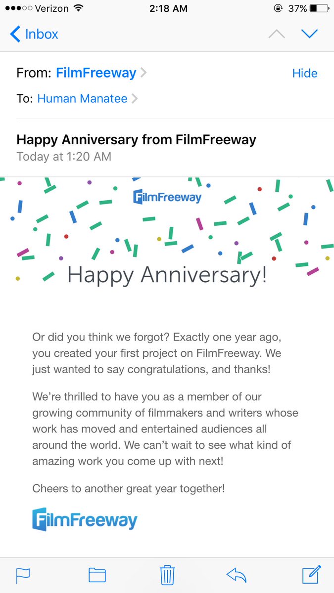 Even on my honeymoon @FilmFreeway managed to send me happiness!pic.twitter.com/dKYtg7kpkB