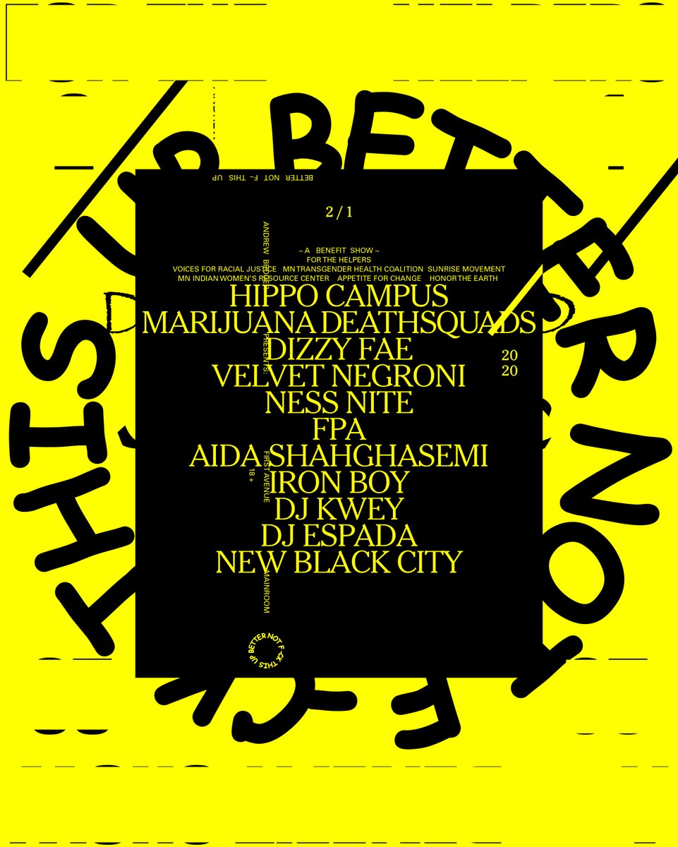 the full line-up for @AndrewBroder's BETTER NOT F_CK THIS UP Benefit Show at First Avenue on Saturday, Feb 1 now includes