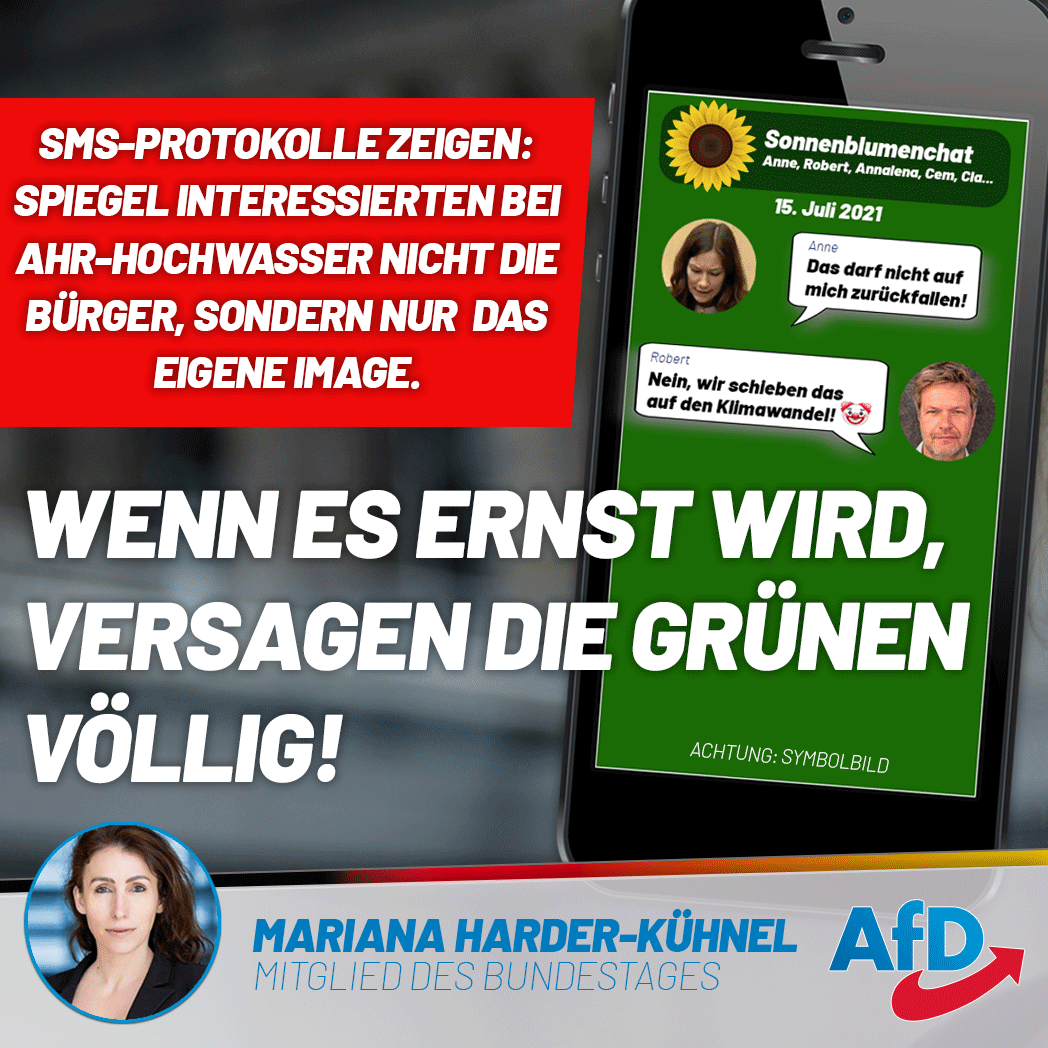 #Gruenen handeln, ist hochgefährlich. Das desolate Handeln von Familienministerin#AnneSpiegel, die Angst vor Machtverlust, die die Grünen antreibt, all das ist mehr als bedenklich.#AfD#Ahrtal#Bundestag https://www.facebook.com/M.Harder.Kuehnel/photos/a.319007432018563/1046202159299083/ …pic.twitter.com/Q4WxhMMb0F