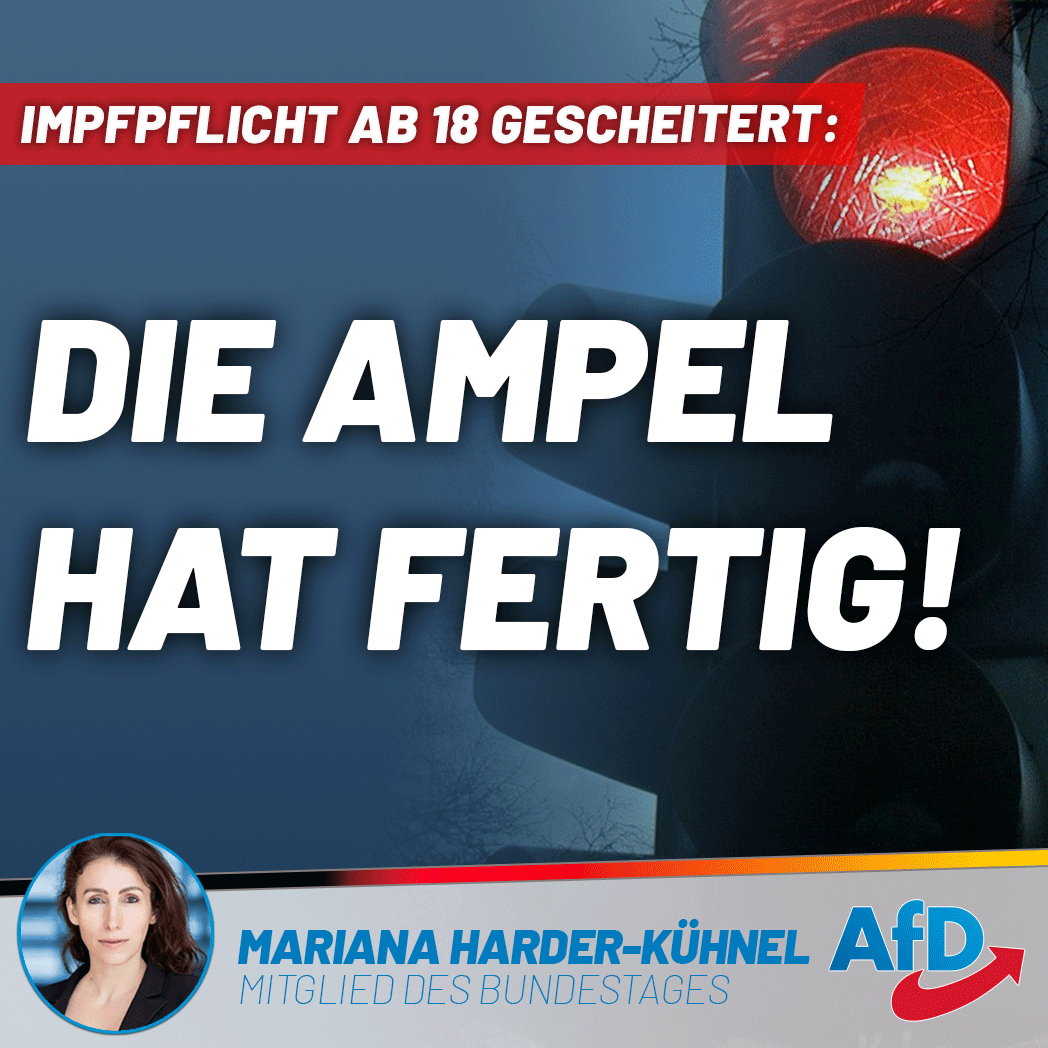 #Ampel ist mit ihrem Vorhaben, eine#Impfpflicht für alle Bürger ab 60 einzuführen, grandios gescheitert. Das ist nicht nur eine gute Nachricht für alle Betroffenen, sondern auch eine für die#Demokratie in#Deutschland.#AfD#GesetzderSchande https://www.facebook.com/M.Harder.Kuehnel/photos/a.319007432018563/1064470527472246/ …pic.twitter.com/pUpk0fVrDl