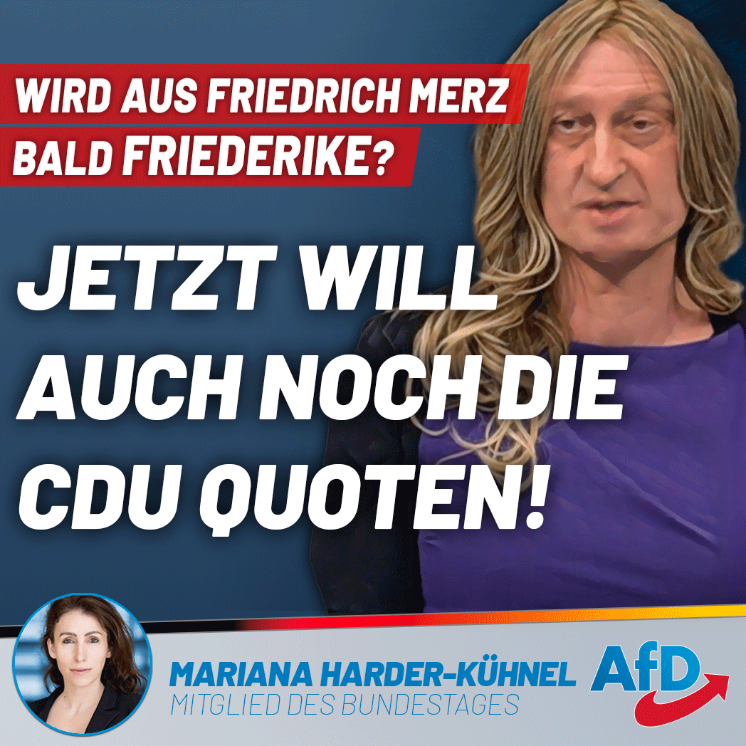 #CDU hat keinen Willen, ihrer Rolle als#Opposition zu entsprechen. Maßnahmen der#Regierung kritisiert sie stets nur dahingehend, dass diese nicht weit genug gingen. Jetzt will sie auch noch die#Quote. Wird aus@_FriedrichMerz bald Friederike?#AfD https://www.facebook.com/M.Harder.Kuehnel/photos/a.319007432018563/1062522404333725/ …pic.twitter.com/UEHZQ51SLP