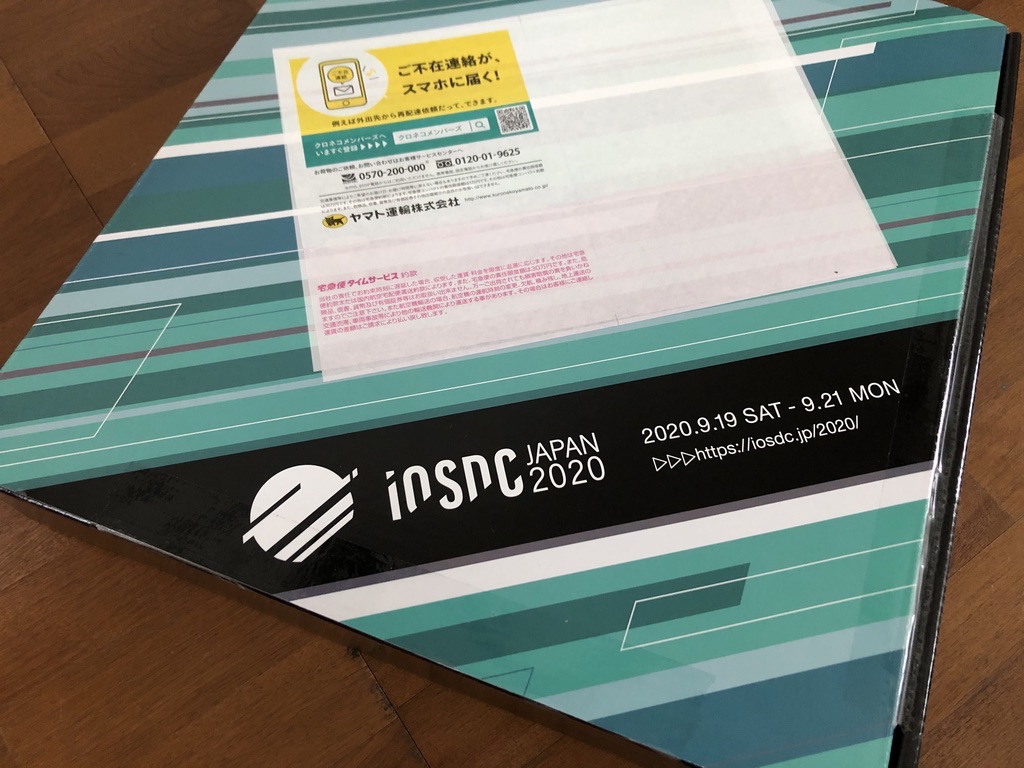 iOSDC JAPAN 2020からノベルティ届いた。コロナ禍でカンファレンスのノベルティはダンボールもデザインする時代なんだなあ。isuconもそうだったみたいだし
