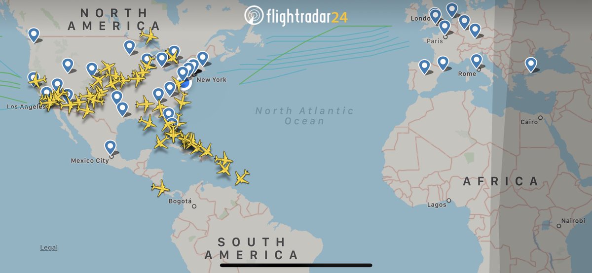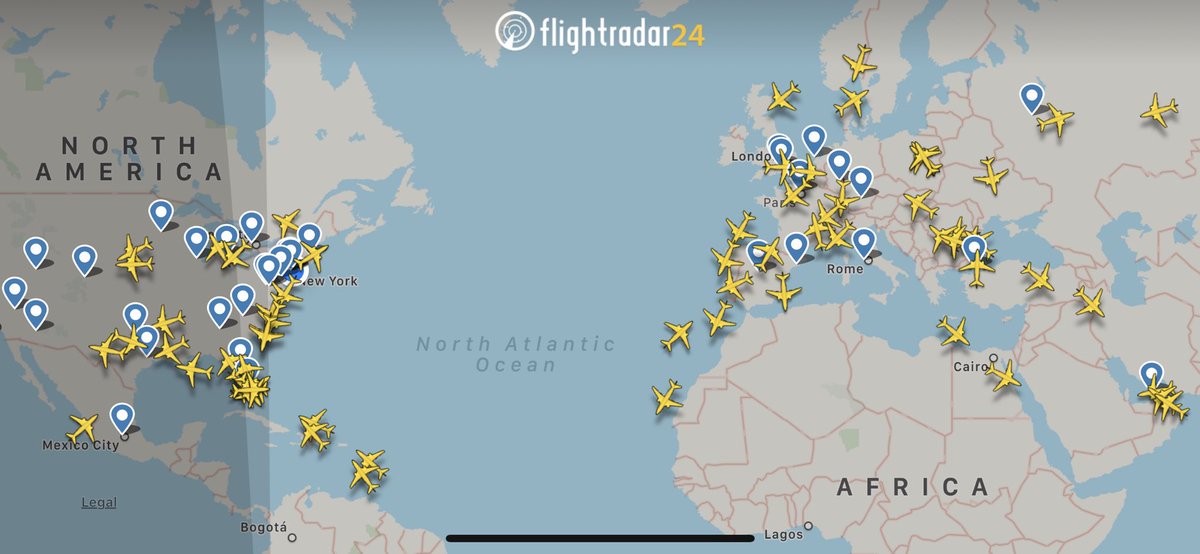 Flightradar24 grab of in flight 737 Max jets taken this morning around 7am NY time and now:pic.twitter.com/MBlYvskbAd