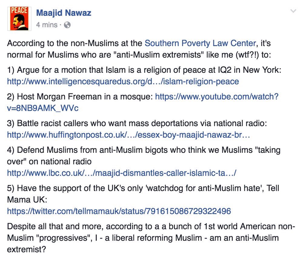Anti-Muslim extremists say "there are no moderate Muslims opposing extremism" I step up & @splcenter list me as an "anti-Muslim Extremist".