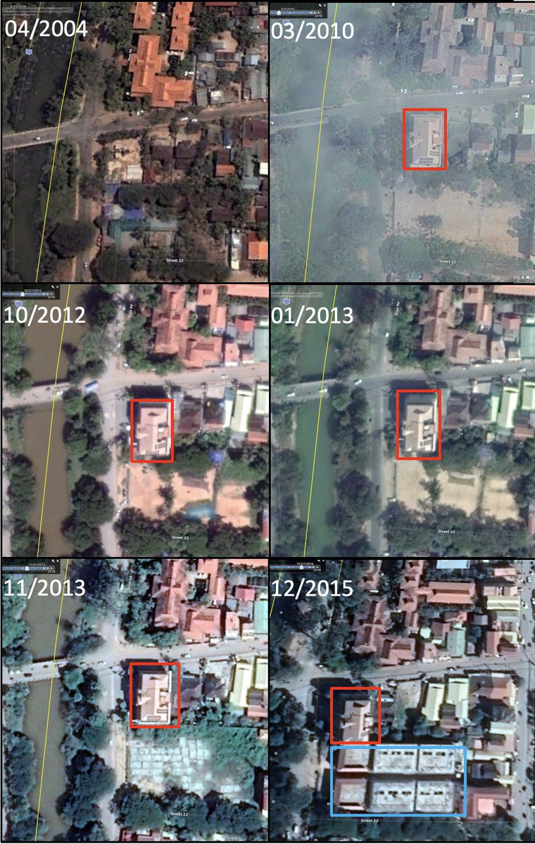Satellite images of corner of River Road & Samdech Tep Vong in different years. In 2004 the hotel building did not exist. In 2015 the adjacent property south of the hotel all trees were missing. Therefore, ImageC20 could have only be taken during the period 2004-2015pic.twitter.com/5LGdat39BU
