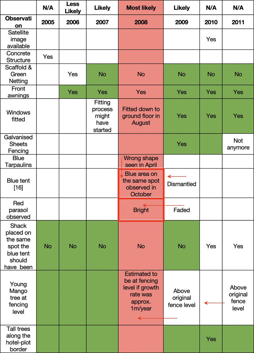 Approximate timeline of the construction of the hotel building and observations on the adjacent property. The information is used to establish a likely period of time within which Imagec20 could have been producedpic.twitter.com/9MCZkrunML
