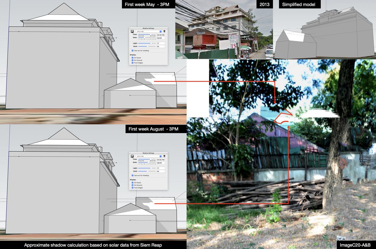 Although the shape of the resulting shadows might not be the same due to the simplification of the building and atmospheric factors, the analysis provides an intuitive approach to determine when the shadow of the hotel reach the nearby building as seen on ImageC20.pic.twitter.com/Q2nsIrMot9