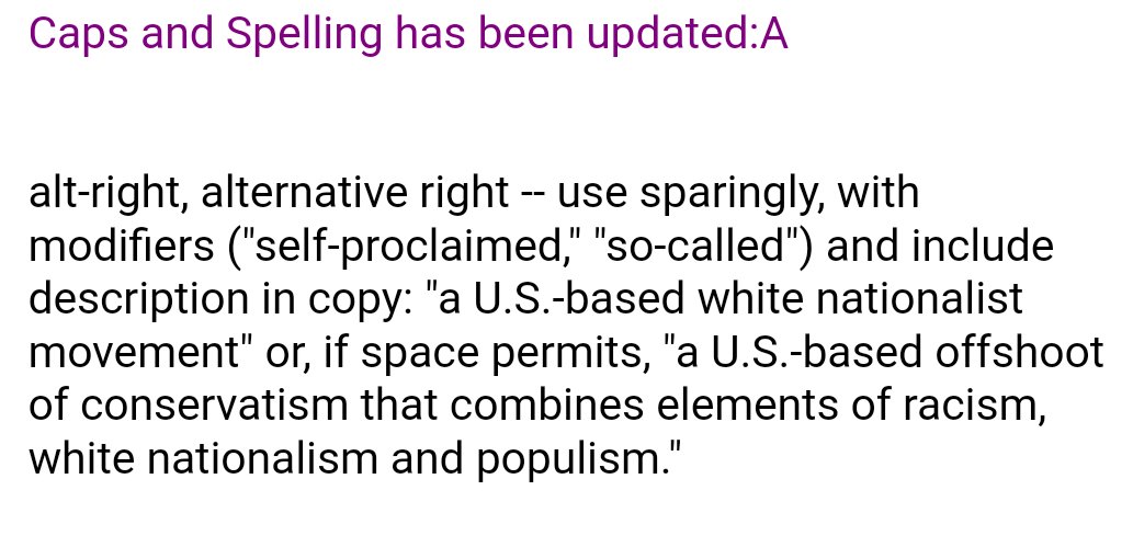 The Canadian Press issued new guidelines for using the term “alt-right” https://goo.gl/CzyLmm pic.twitter.com/xS67eHK5tu