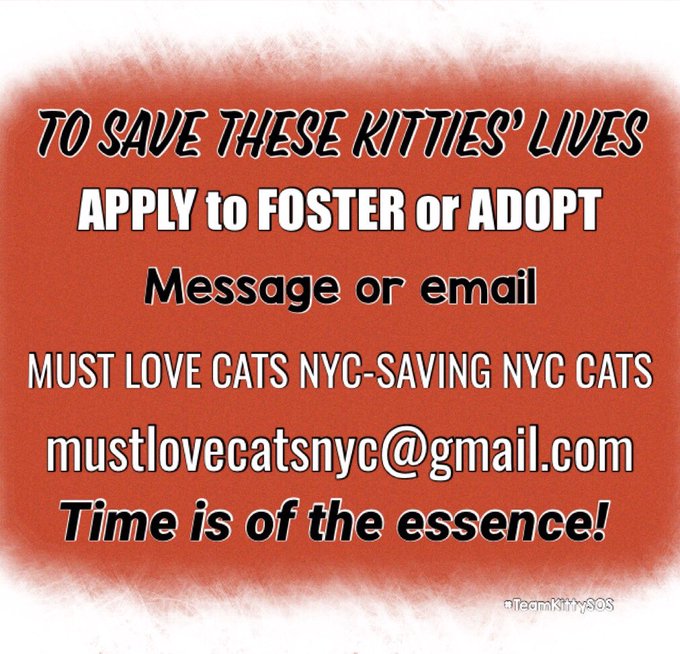 #adopt#foster#pledge & help them live and love for years to come. Please help now as noon on Thursday may be too late. Please don't wait!#DEATHROW#deathrowcats#NYC#catshttps://twitter.com/NYCDEATHROWCATS/status/1224840370628055040 …