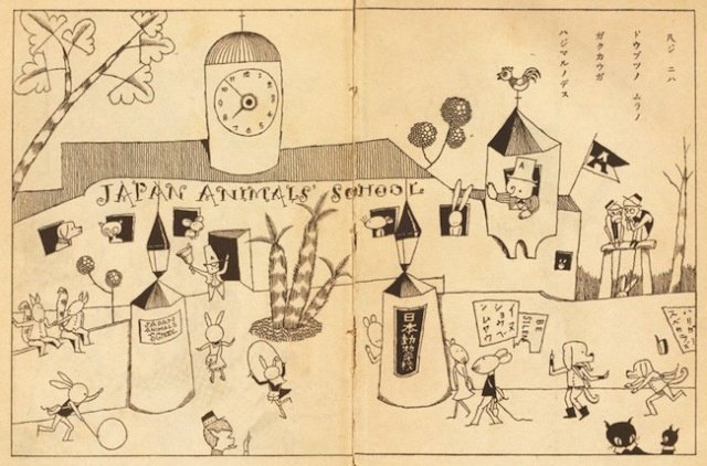 #Japan Animals' School (1927) by Takeo Takei. The owl is of course in charge...pic.twitter.com/DtA7WSx4WP
