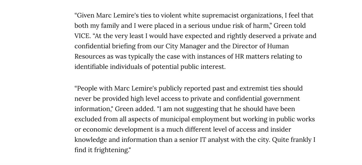 For years the City of Hamilton has had one of Canada's highest profile neo-Nazis on staff in their IT department. Here is the story.https://www.vice.com/en_ca/article/bj9mwd/former-neo-nazi-leader-marc-lemire-has-been-on-city-of-hamiltons-payroll-for-years …