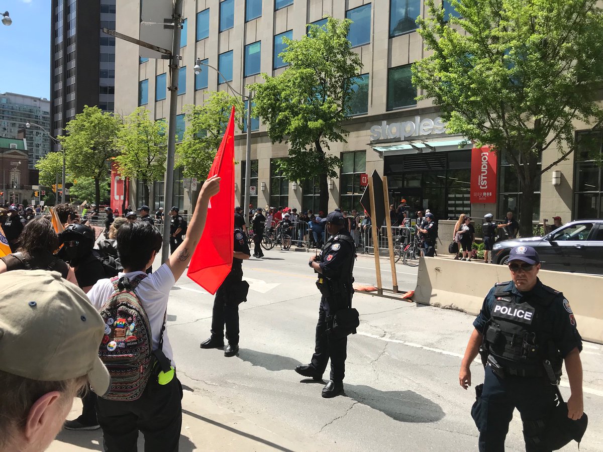 The antifa crowd continues to march down Bay and, folks,I think that’s the end of it. Pretty mellow as far as these things go. Thanks for following along. If anything changes I’ll keep you posted but more likely than not things will taper out and I’ll go get a beer.pic.twitter.com/so3RWcWtEC
