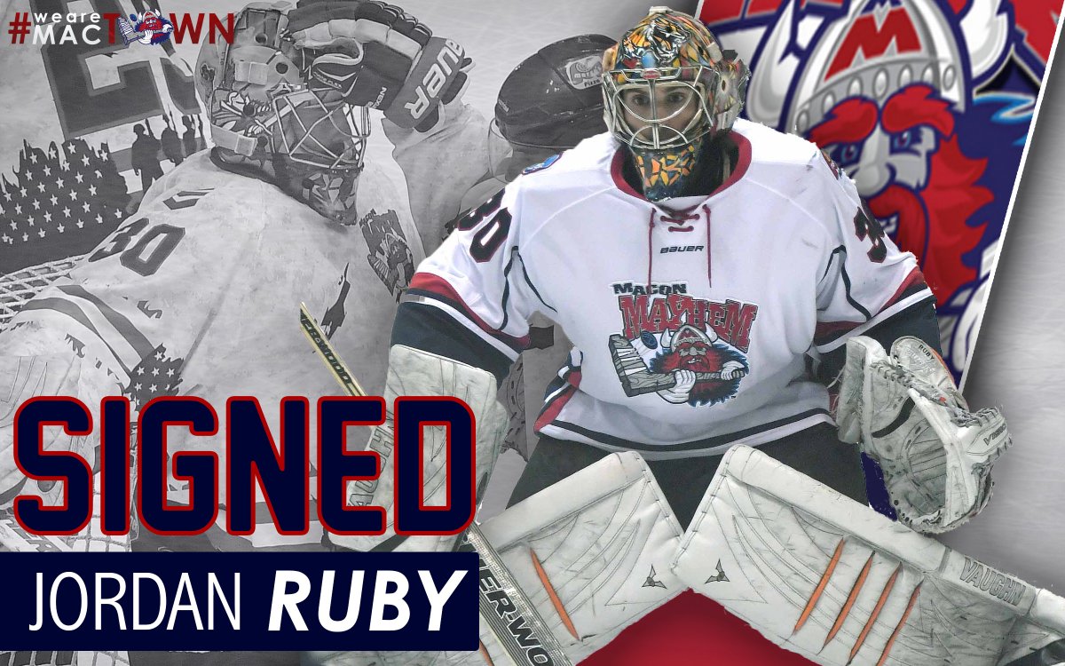 BREAKING: The Mayhem have signed goaltender and 2016-17 SPHL Playoffs MVP Jordan Ruby for the 2018-19 season! Ruby went 6-1 with a 1.38 GAA and .957 SV% in the 2017 playoffs to help lead the Mayhem to their first President's Cup championship. Full story: https://bit.ly/2lAddkr pic.twitter.com/ZZj55nGIo7