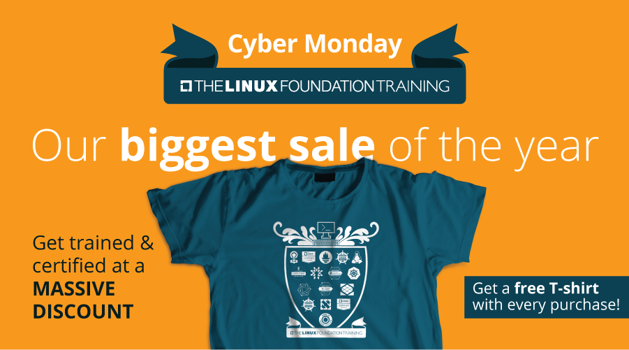 Don't have regrets. Check out the @linuxfoundation's Annual #CyberMonday Sale that continues for 3 more days! Certifications & prep courses are only $179 and each purchase comes w/ a free t-shirt! Check it out: http://bit.ly/2TYgslM #opensource #trainingpic.twitter.com/VKMdORwkZR