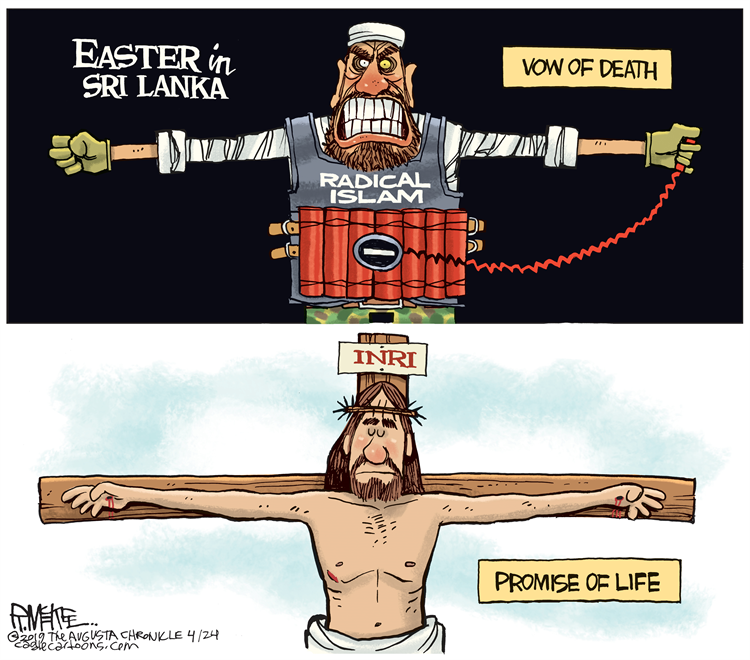 The pregnant wife of a Sri Lankan suicide bomber who killed over 300 Christians detonated a suicide vest when police raided the family’s Colombo home, killing herself, her children, and police officers. Media silent.