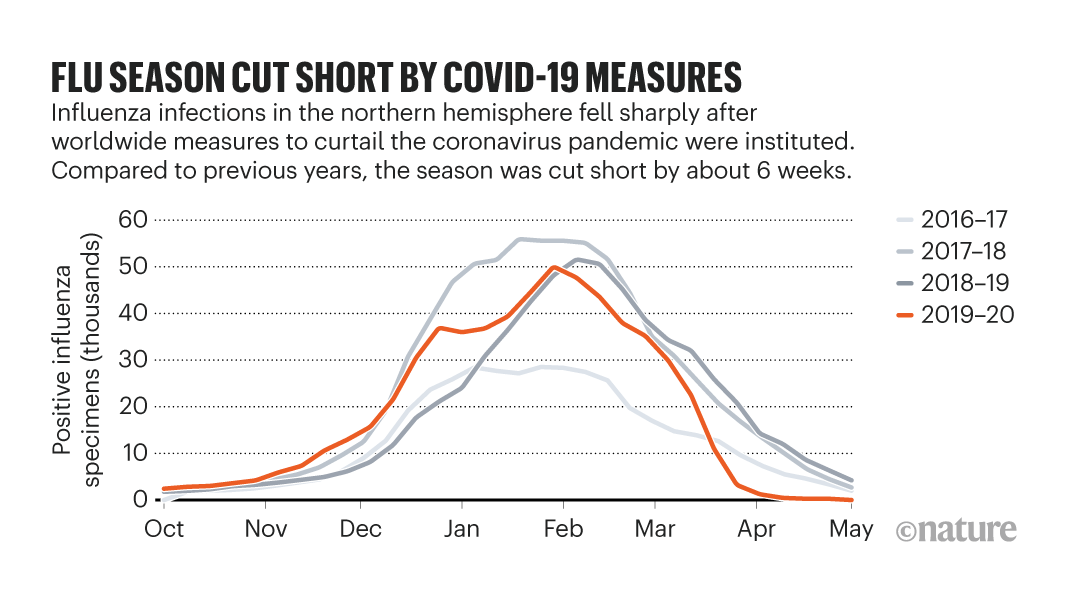 A lockdown doesn't seem to be necessary to achieve this six week effect on the Influenza season. Here is the graph from Sweden (vecka = week, antal fall = cases). From https://www.folkhalsomyndigheten.se/folkhalsorapportering-statistik/statistik-a-o/sjukdomsstatistik/influensa-veckorapporter/aktuell-influensarapport/ …pic.twitter.com/juxWkNmR8t
