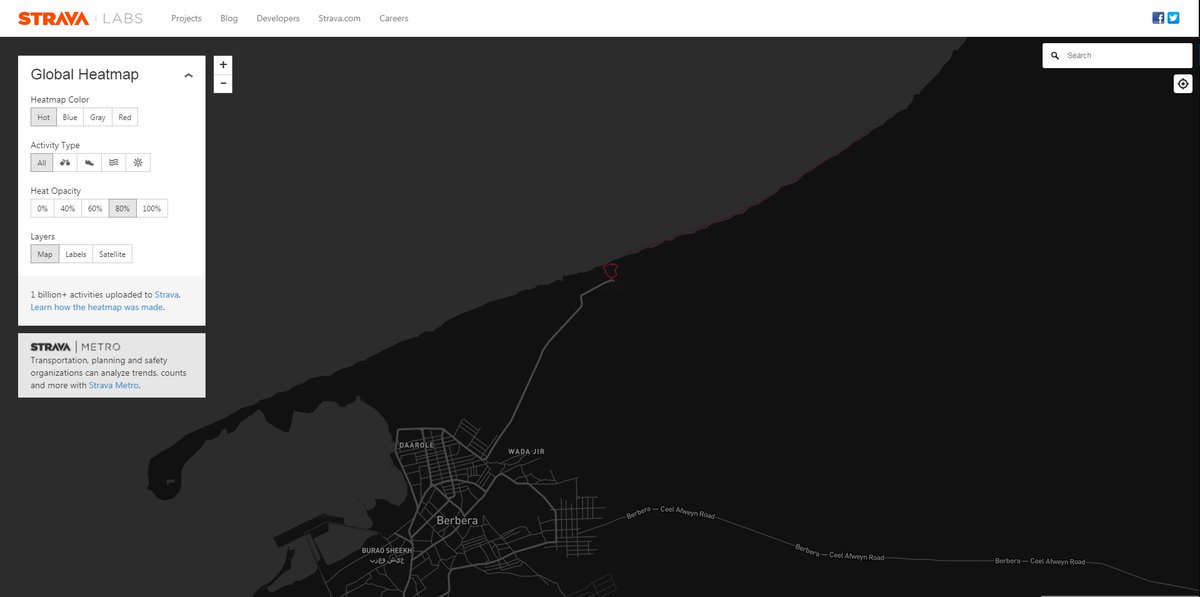 Fitness tracking app @Strava exposes the locations of secret #US military bases in Many counters, including #Somalia, #Syria and #Afghanistan.pic.twitter.com/O5WofAv9bc