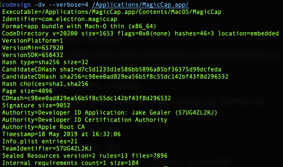 Starting from MagicCap 1.1.0 beta 3, MagicCap is now signed! Note that this will not immediately apply due to me having to manually sign each release, but it shouldn't be long after release.pic.twitter.com/Foq09tgbdj