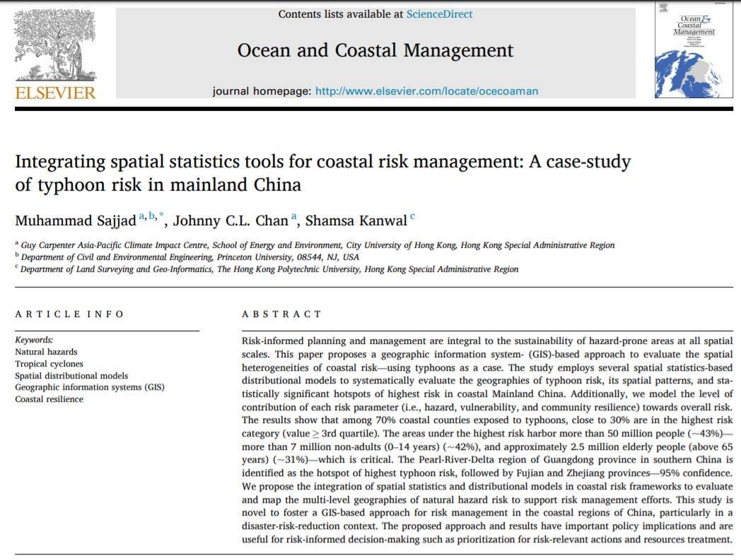 #spatial statistics tools for effective#risk management" published in Ocean&Coastal Management. https://bit.ly/2J4litT#Typhoons#Resilience#Research#Hurricanes#China#riskmanagement@GuyCarpenter@JamesHNash@CityUHongKongpic.twitter.com/4jj5K6uLMB
