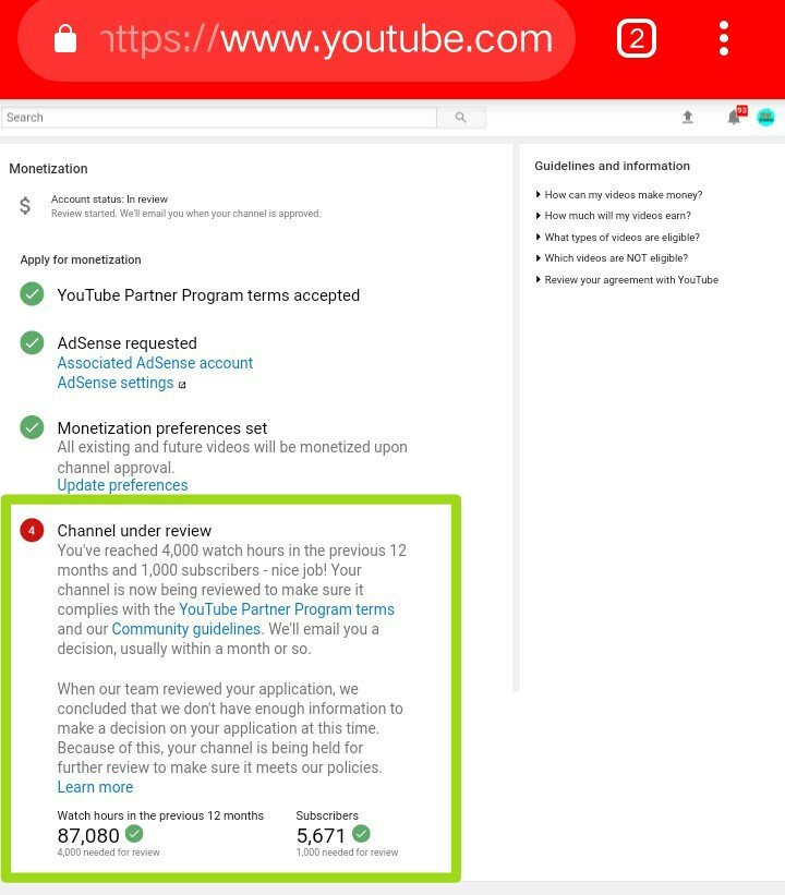Thanks for reaching out. Mind sharing a screenshot of your channel's monetization page for us to look into it: https://yt.be/help/3Eg4 ? Keep us posted.