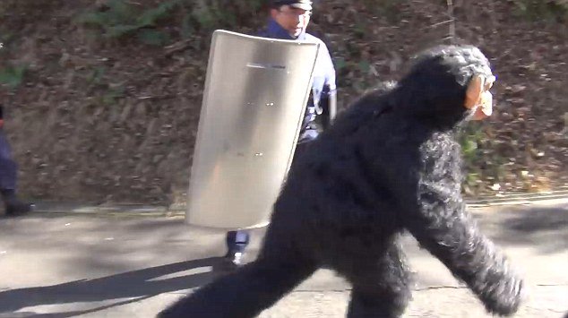 Man wearing a chimpanzee suit plays the role of an escaped animal in a bizarre drill at zoo in Tokyo http://dailym.ai/2kh6s3H pic.twitter.com/JUBPBiyn32