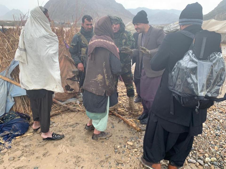 #Afghanistan National Army evacuated those affected by floods in Punjwaye district of #Kandahar province. Taking timely steps, the government has set up shelters for thes ppl in Kandahar city. The man (with a winter hat talking to a woman) is deputy governor Abdul Hanan Munib.pic.twitter.com/3F6qhk4P8R