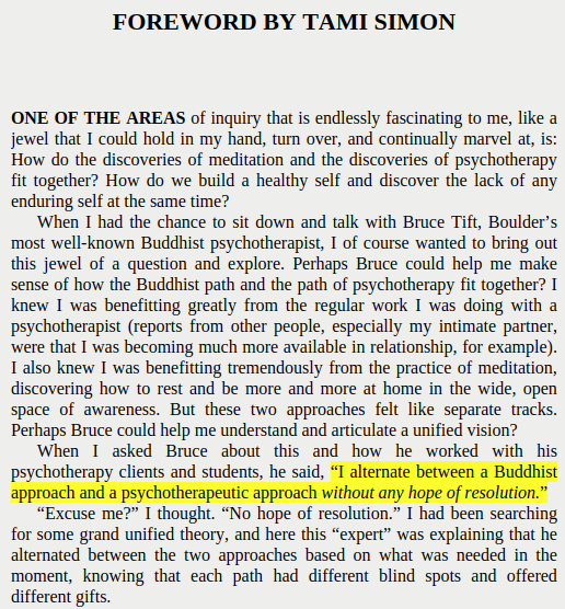 You might dig Bruce Tift's book Already Free, which comes from his perspective as a psychotherapist and serious buddhist... studied under Trungpa at Naropa. He orients to the dialectic very creatively. First excerpt below is about Tift; second is by him. https://twitter.com/Malcolm_Ocean/status/1216958585701392384 …pic.twitter.com/v2O49j02pe