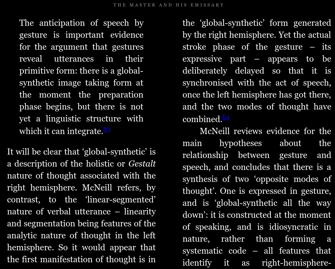 Some excerpts on gesture. Second tweet is the real gem here, talking about how usually when people misspeak, their gesture is still accurate 😮https://twitter.com/Malcolm_Ocean/status/1211151739199590400 …