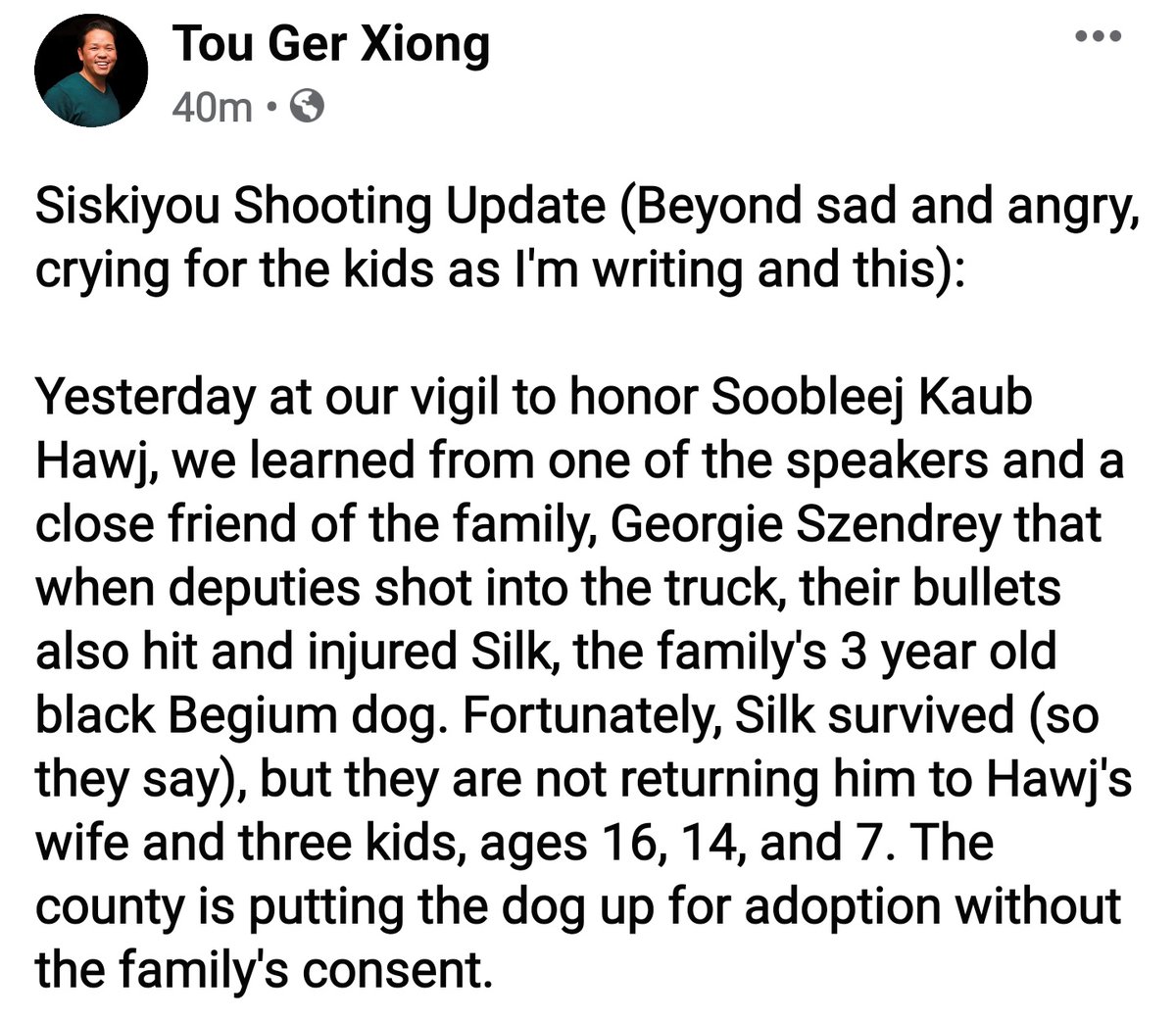 A preventable tragedy for the entire Hmong community in beautiful, remote Siskiyou County. Also a reminder of the urgent needs for language access, inclusion, and independent investigations of law enforcement use of force.https://www.sfchronicle.com/bayarea/article/Hmong-community-calls-for-justice-in-Siskiyou-16321908.php …