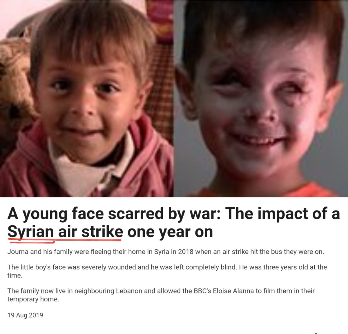 #BBC#FakeNews about#Syria was exposed, BBC reluctantly redacted its propaganda a few times, finally was forced to admit the truth Changes: "a Syrian airstrike"
