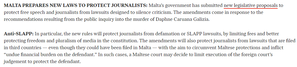 #Malta#RuleOfLaw reforms continue with Anti-#SLAPP legislation being proposed to protect#journalists and to strengthen#FreeSpeech in#Malta. Read more@POLITICOEurope