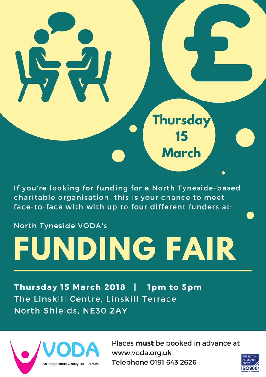 #funding in North Tyneside? Places at our annual Funding Fair are filling up - don't miss out on your chance to meet up to four of the region's top funders on 15 March@LinskillCentre http://voda.org.uk/vodas-funding-fair-2018-thursday-15-march/ …pic.twitter.com/ijvBMeK50y