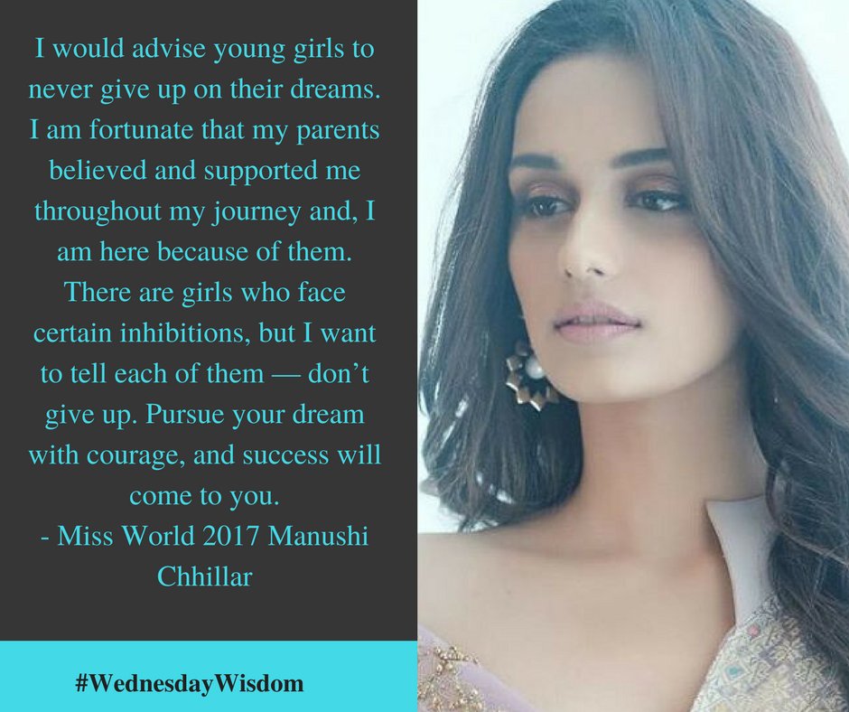 #WednesdayWisdom Listen up young girls,@MissWorldLtd 2017@ManushiChhillar has something to say!pic.twitter.com/AjGxeFAuea